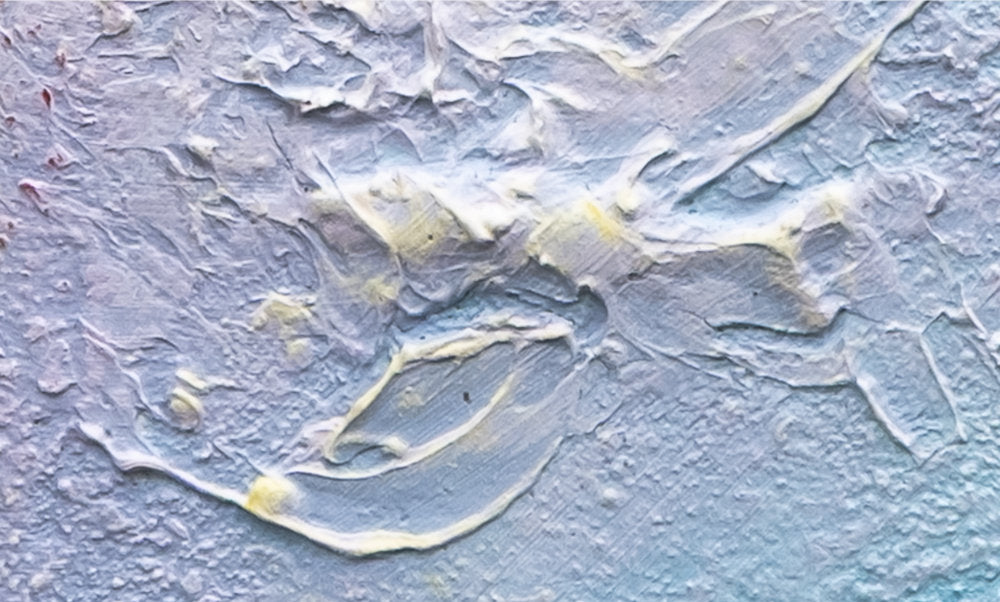 The title reflects both the refuge the fish find under the turbulence and the ocean itself as sanctuary: a protected space, a place of vitality, and for this paddler, a source of pure joy. The textured, layered surface invites you to look closer, discovering new details with each viewing, just as the ocean reveals its secrets to those who spend time in its embrace.